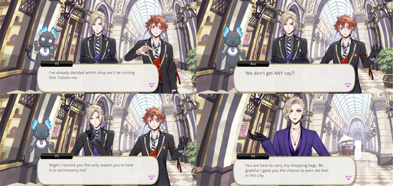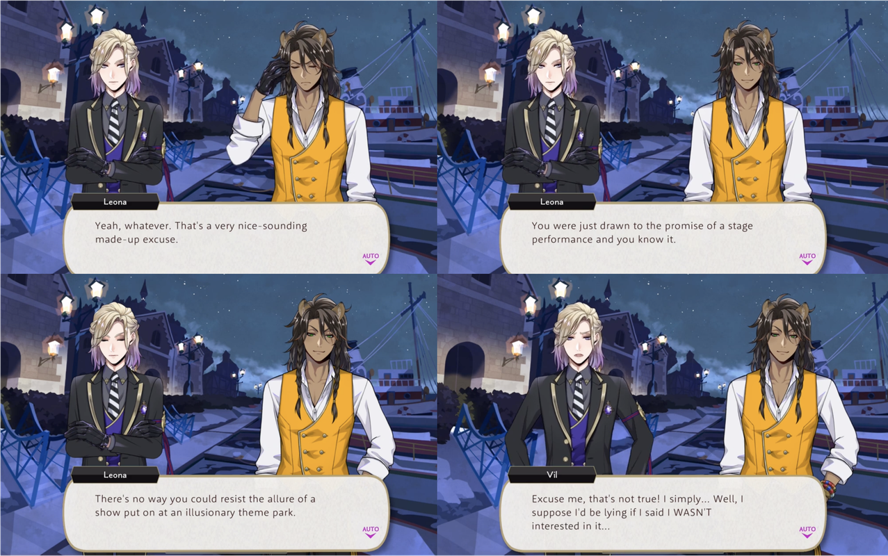 Leona responds, “You were just drawn to the promise of a stage performance and you know it. There’s no way you could resist the allure of a show put on at an illusionary theme park,” and Vil admits that he would be lying if he said he wasn’t interested.
