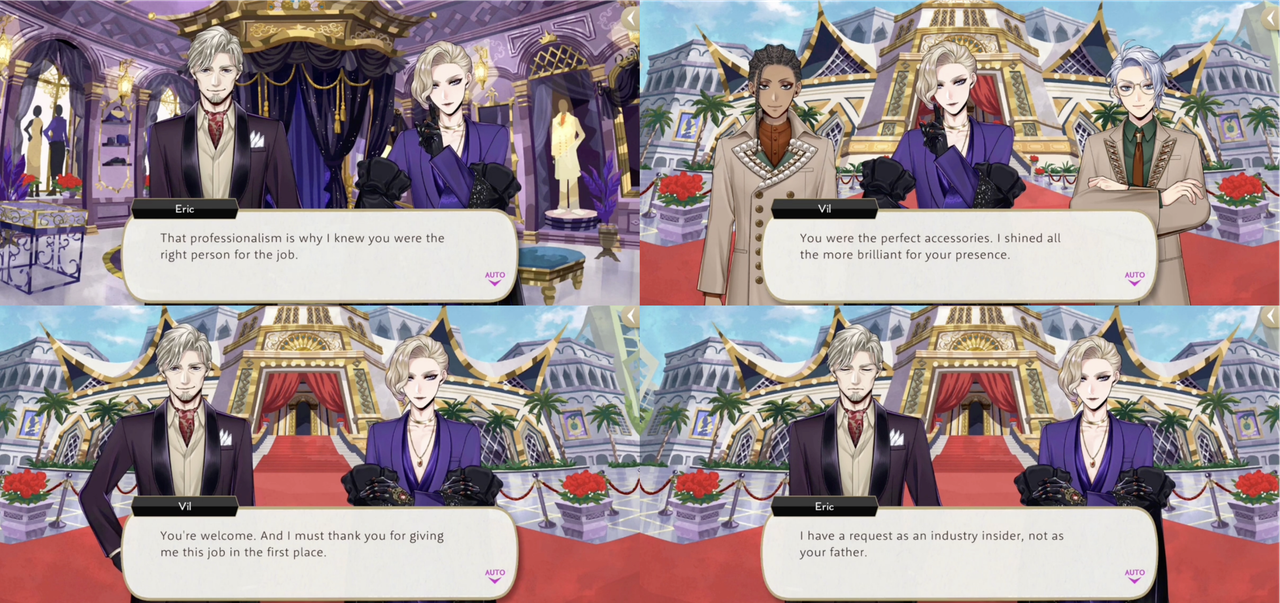 Eric tells Vil that his professionalism is why he knew he was the right person for the job, and Vil tells the other students that they were the perfect accessories.