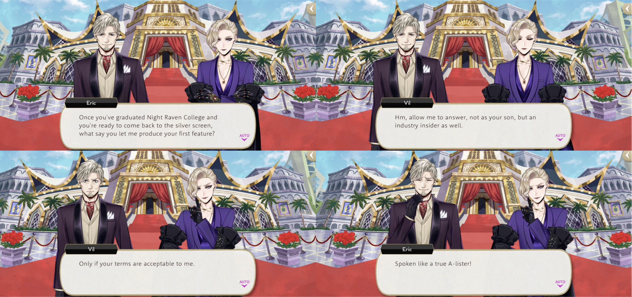 Eric asks if he will be able to produce Vil’s first feature after Vil graduates from NRC as soon as he is ready to get back into acting and Vi responds, “only if your terms are acceptable to me.”