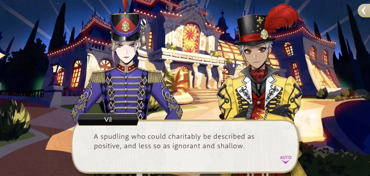 When Vil points out that he has more reason to be ashamed than Kalim for the content of his dream Kalim agrees and Vil responds, “This is exactly what I’m talking about!” in reference to Kalim’s insensitivity.