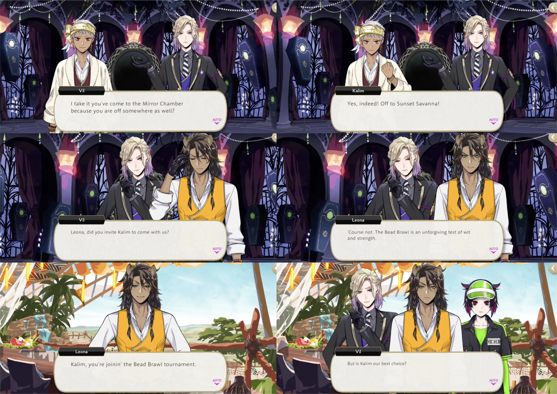When Leona suggests the strategy of Kalim taking his opponent by surprise to compensate for his lack of strength Vil observes, “hard to imagine Kalim actually pulling anything like that off, even if he wanted to.”