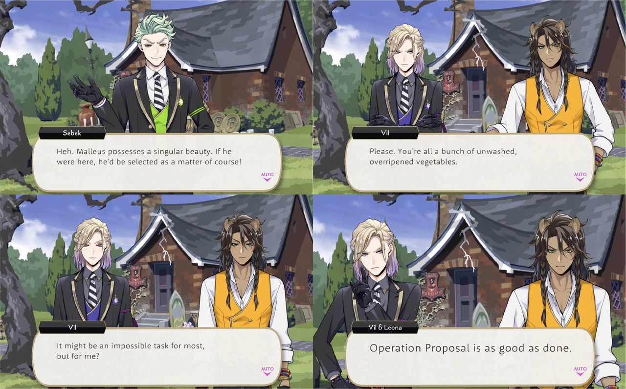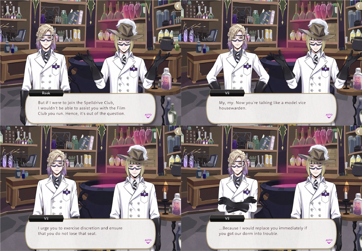 Vil encourages Rook to join the Spelldrive club if he is so desperate for time with Leona as Leona is the club captain, and tells him, “I urge you to exercise discretion and ensure that you do not lose (the vice housewarden) seat…because I would replace you immediately if you got our dorm into trouble.”
