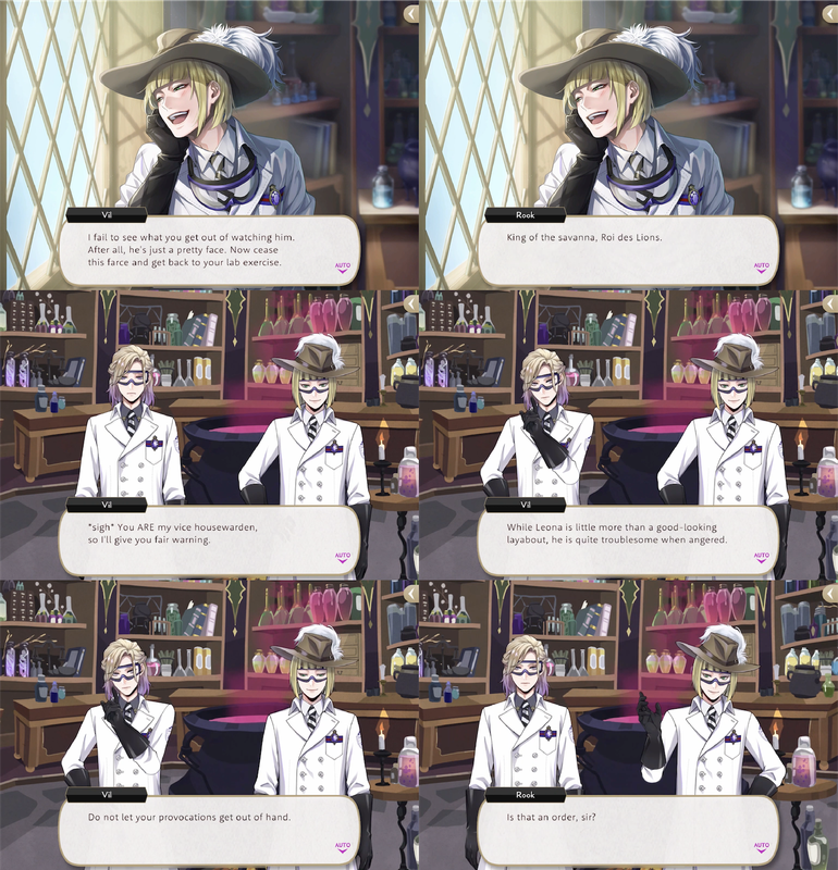 Vil gives Rook a warning: “While Leona is little more than a good-looking layabout, he is quite troublesome when angered. Do not let your provocations get out of hand.” Rook asks, “Is that an order, sir?”, and Vil responds, “You’re welcome to take it that way”.