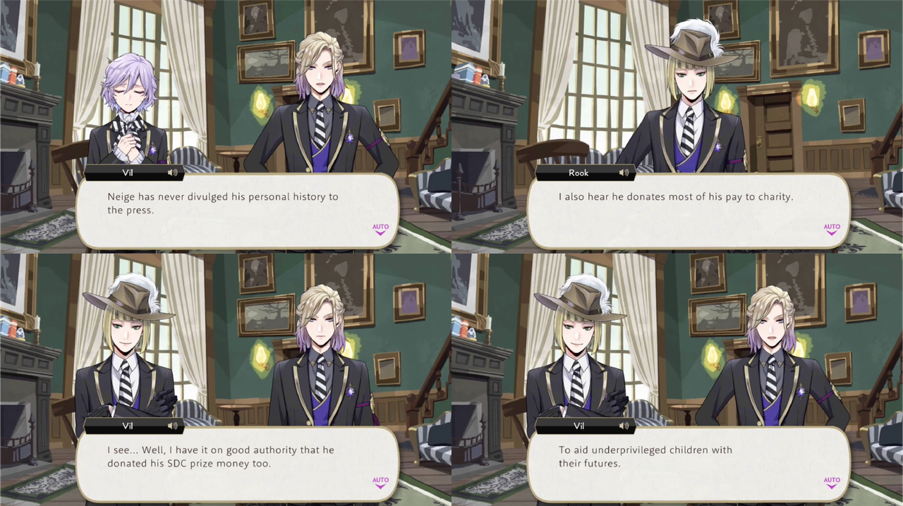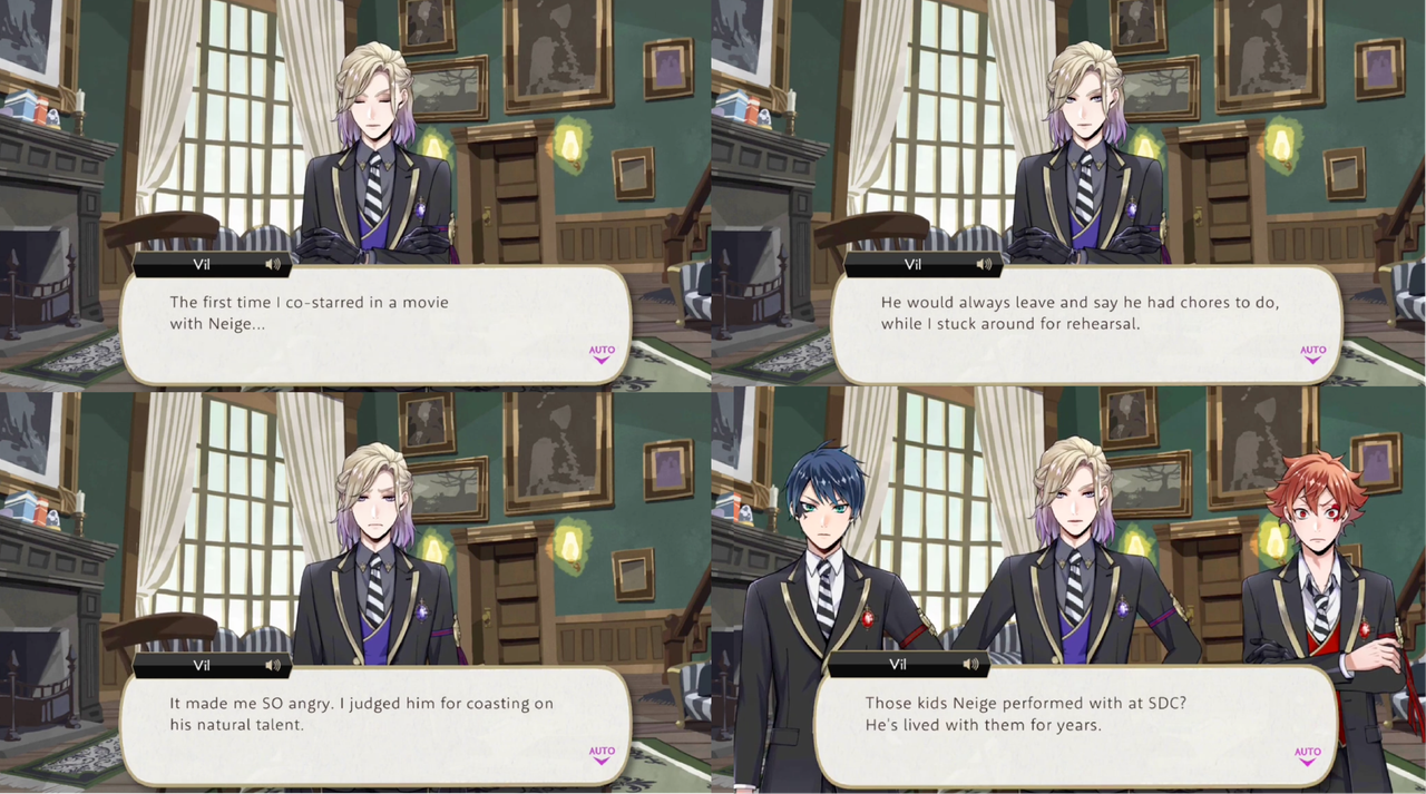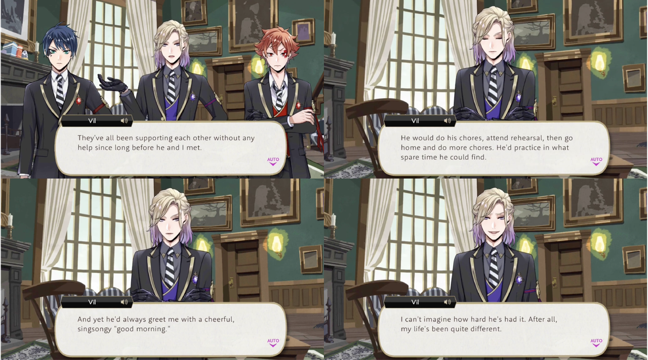 While it is never explicitly said that Neige is an orphan, Vil says, “He would do his chores, attend rehearsal, then go home and do more chores. He’d practice in what spare time he could find. And yet he’d always greet me with a cheerful, singsongy ‘good morning.’ I can’t imagine how hard he’s had it. After all, my life’s been quite different.”