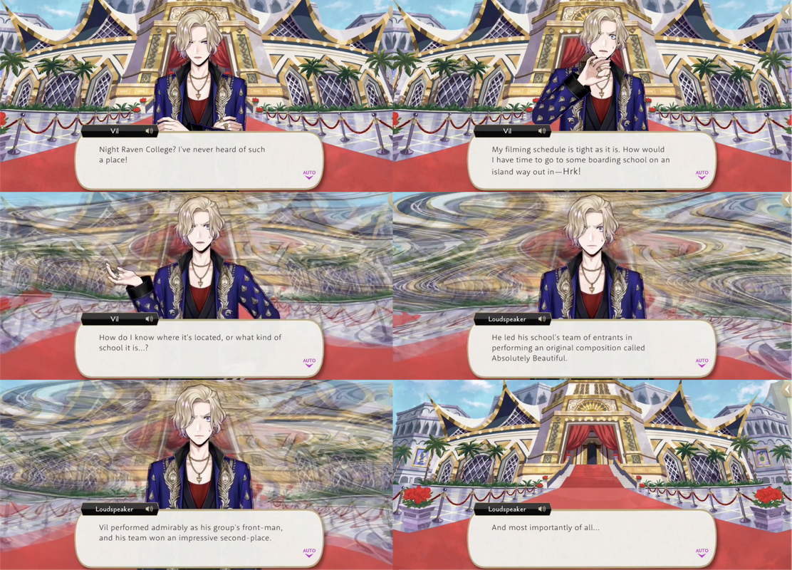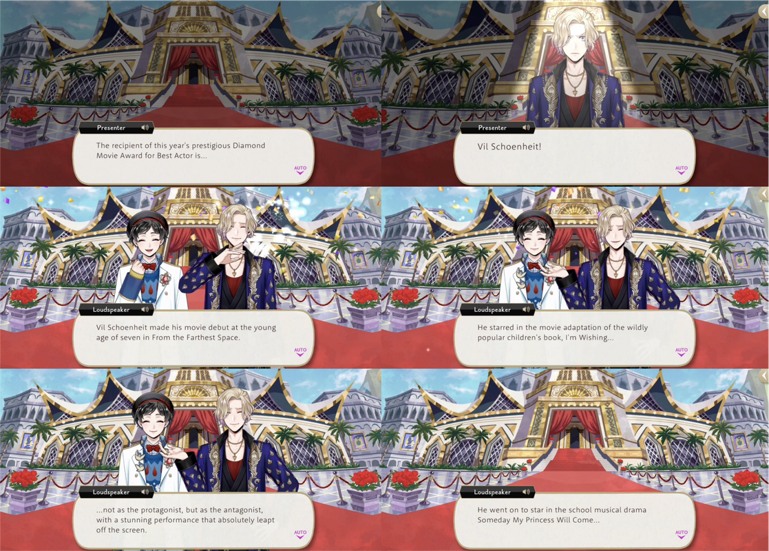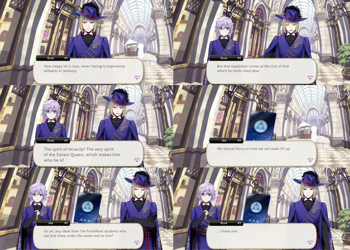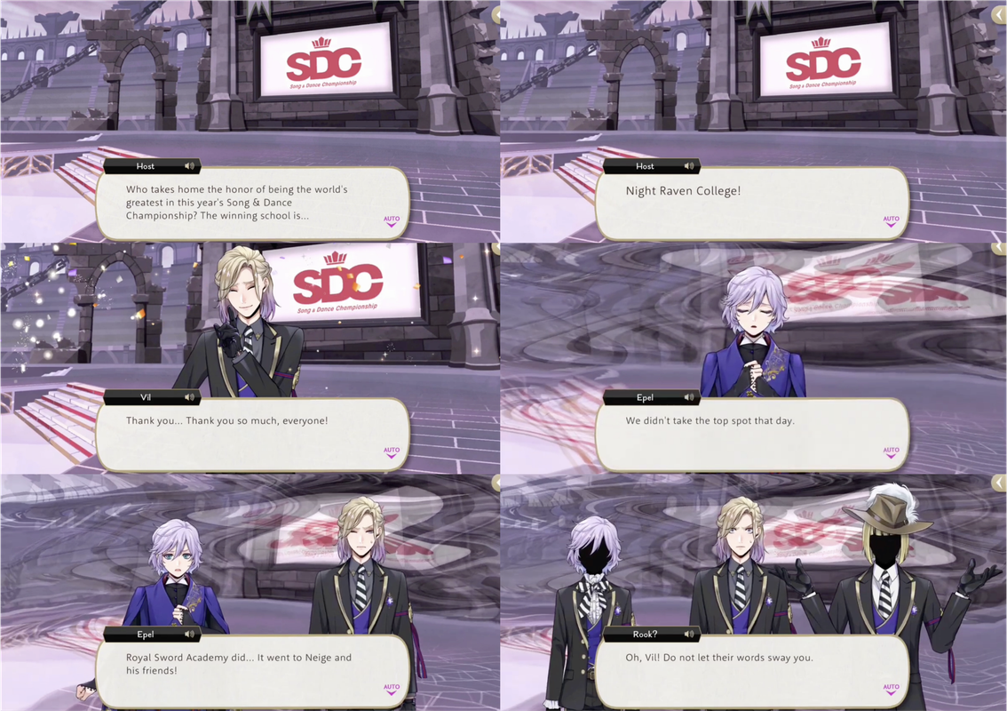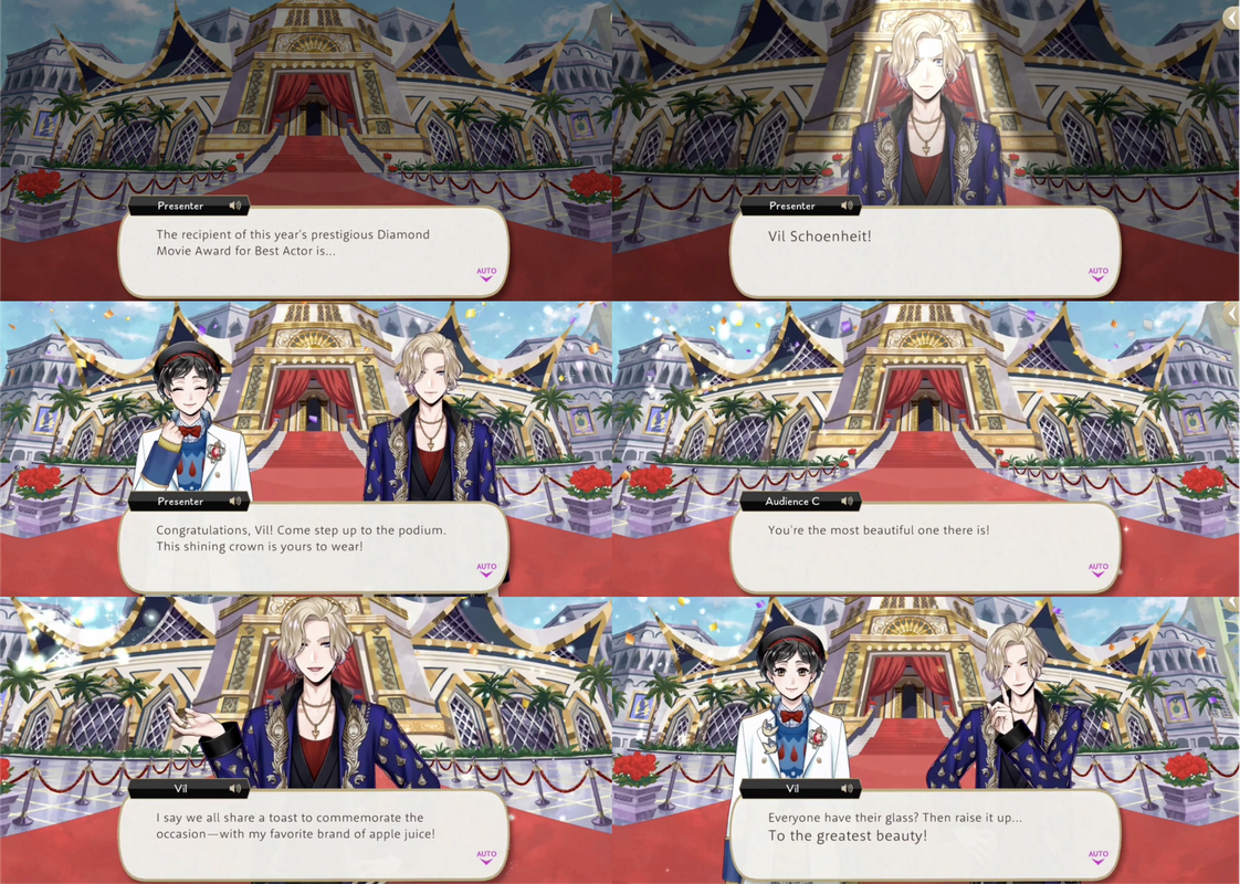 After being announced as the winner of the best actor award Vil is awoken from his dream by Rook reminding him of his past roles as villains, his founding of the Film Research Club, his performance at the VDC and his role as Housewarden of Pomefiore.