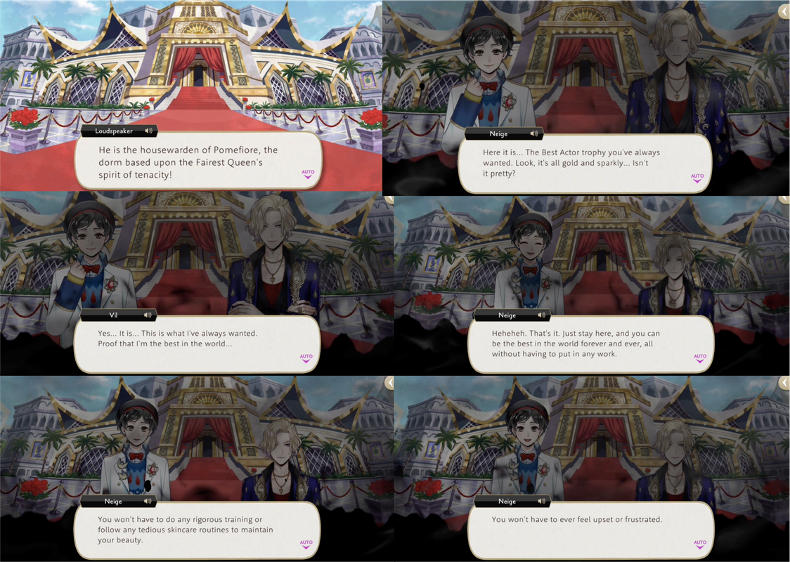 Instead, the dream redefines Neige as someone who cannot possibly be a rival to Vil, so that Vil might easily win the Best Actor award that Neige did in reality.