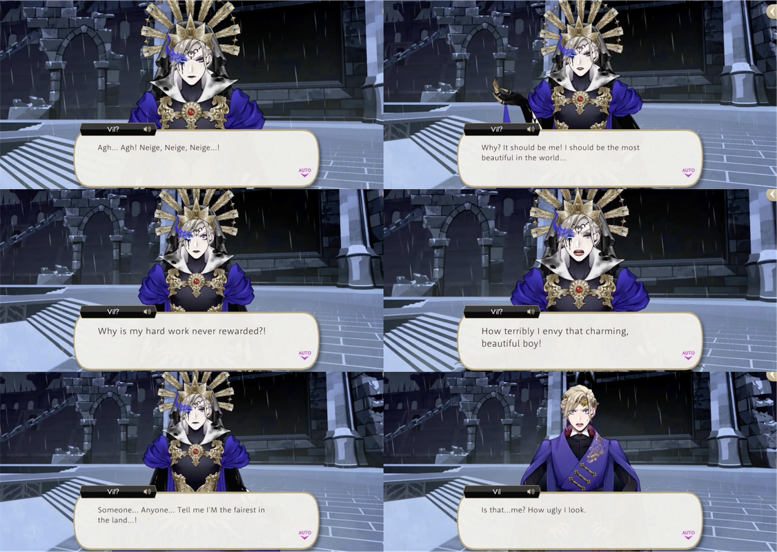 Vil declares, “I shall be the one to decide who, at this exact moment, is the fairest in the land.”