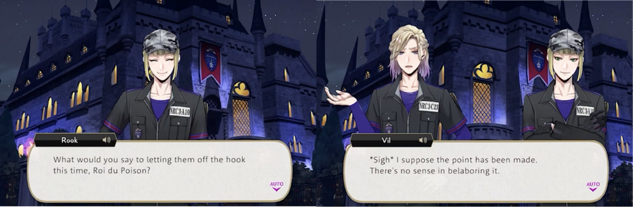 Rook will defend others from Vil’s ire, as seen during opening ceremonies (after Vil refers to the new students as half-priced potatoes).