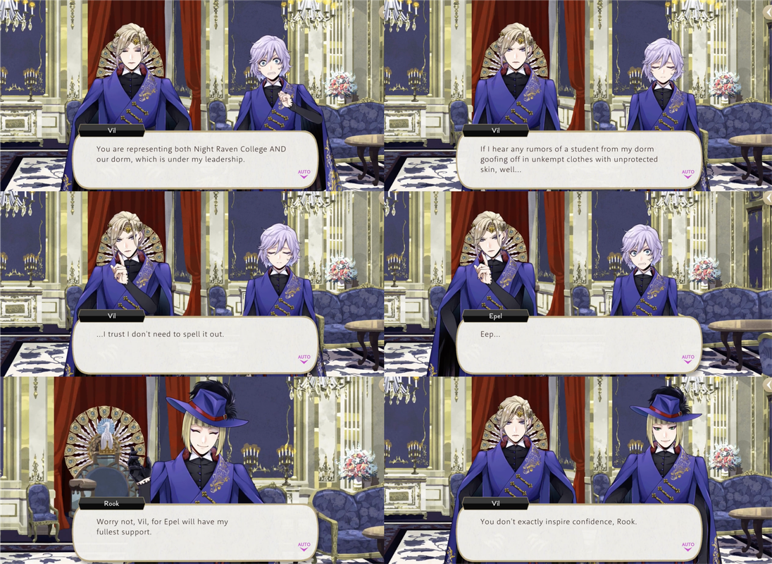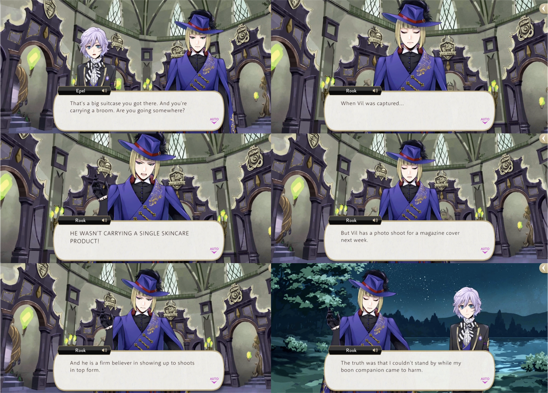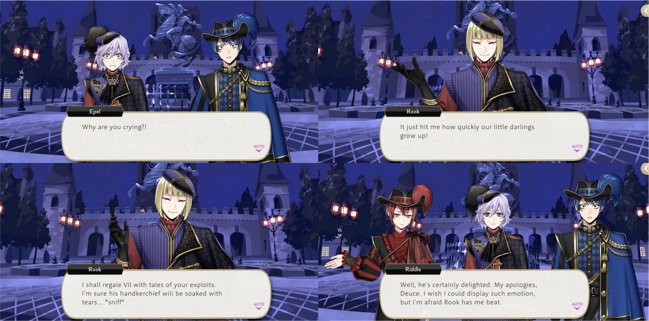 After the drama of Glorious Masquerade Rook is moved to tears, telling Epel that he will regale Vil with tales of Epel’s exploits.