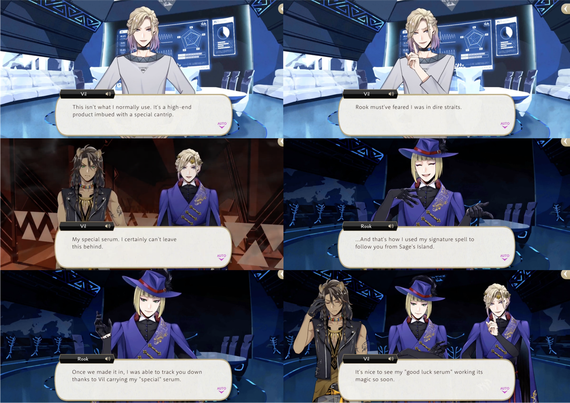 Vil notes a “special serum” amongst the products that Rook has managed to provide him, taking it with him after escaping from his cell at STYX, and the serum is revealed to have been under Rook’s unique magic and acting as a homing beacon for him to locate Vil.
