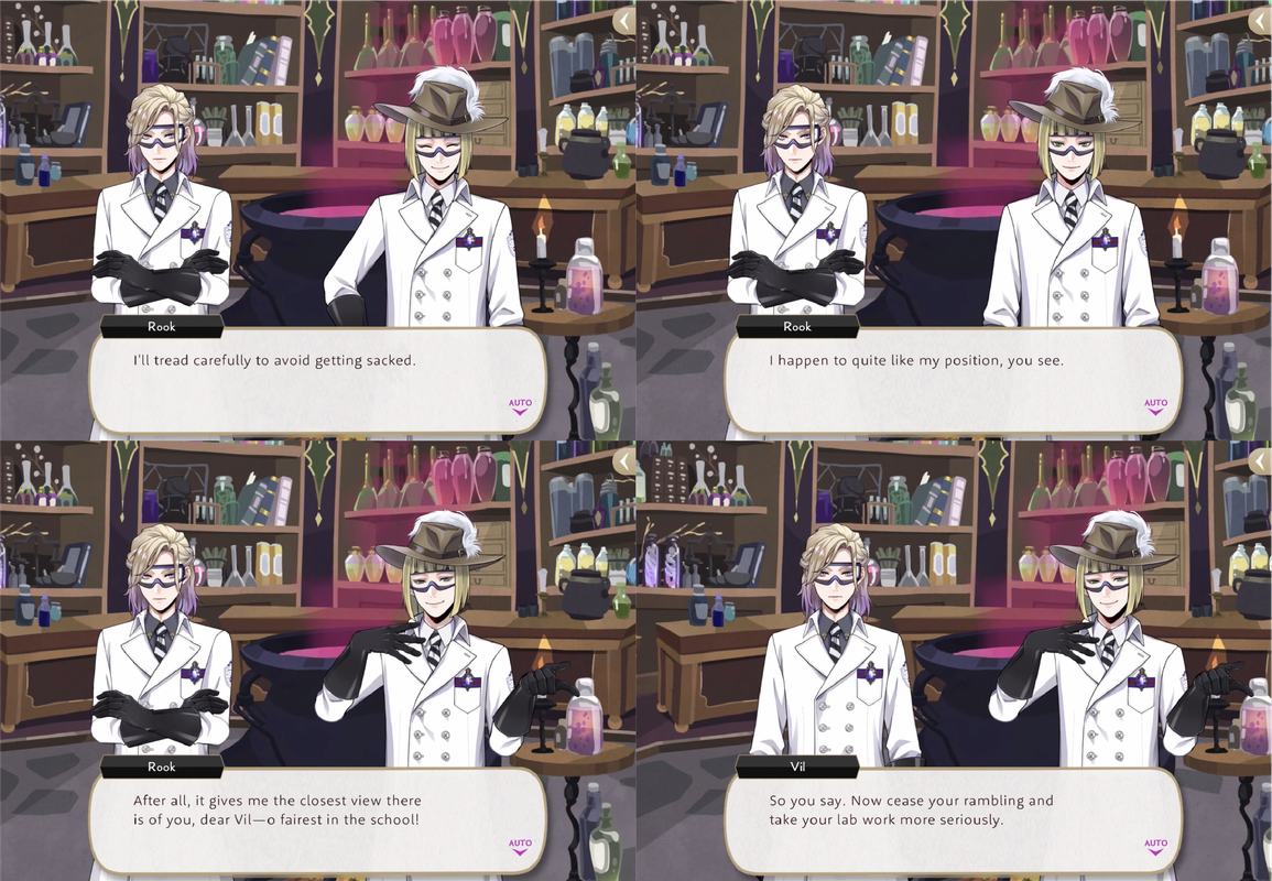 Vil threatens to remove Rook from his role in a bid to keep Rook from bothering Leona, and Rook assures him, “I’ll tread carefully to avoid getting sacked. I happen to quite like my position, you see.”