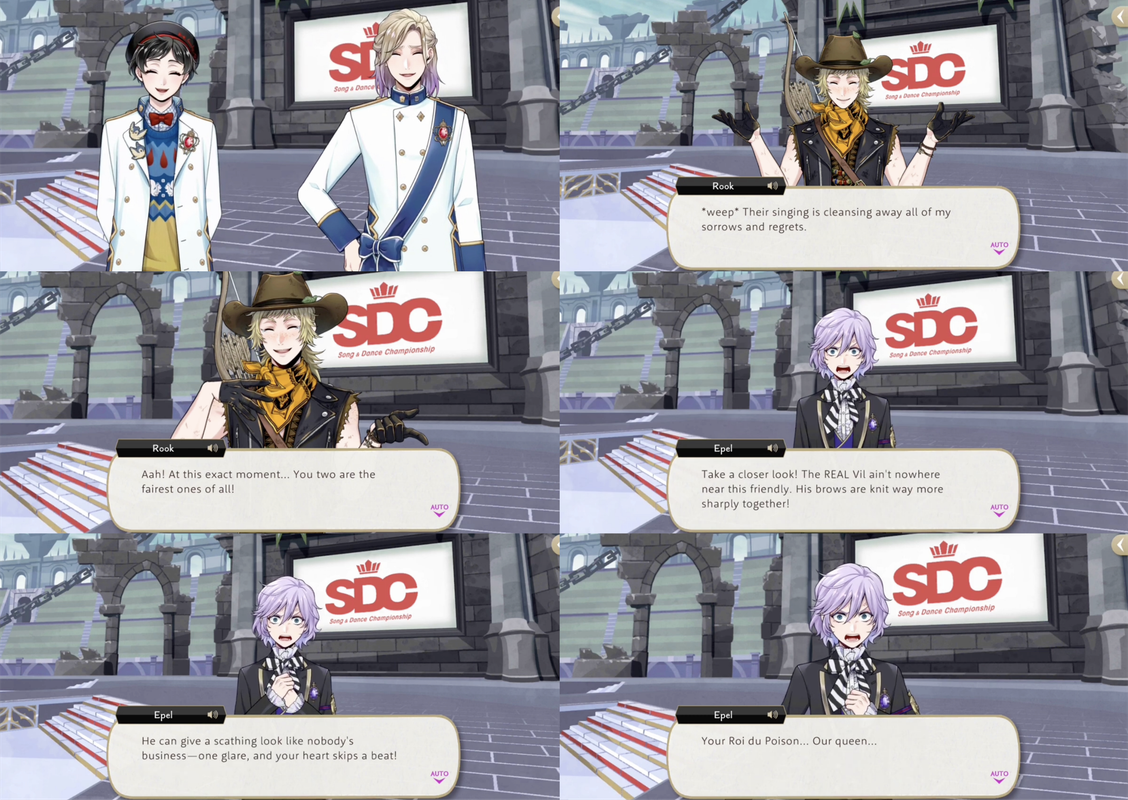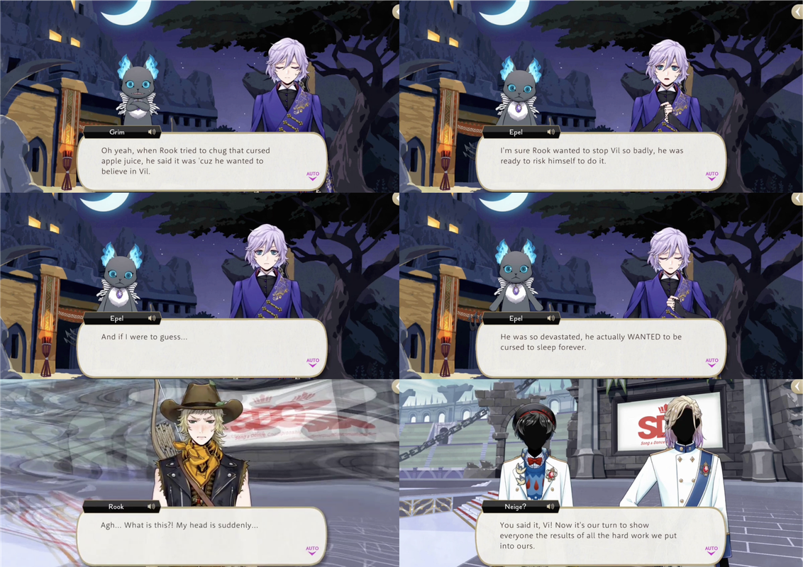 The darkness of Rook’s dream tries to convince him to stay asleep by showing him Neige and Vil performing together and Epel begins to yell at him about how the real Vil is way less friendly, and “way, way, WAY more poisonous and beautiful.”
