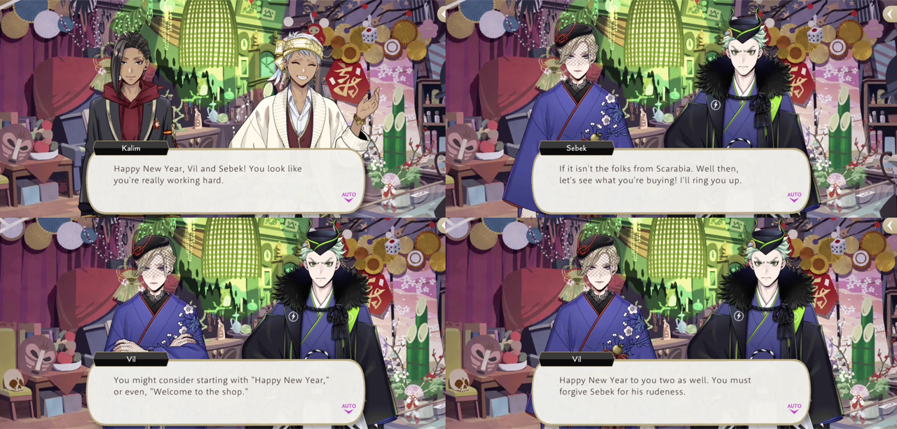 Vil and Sebek overlap largely over New Years, where they are on the same team working for Sam. All four part-time employees shovel snow together before the store opens, with Sebek becoming enraged at the misunderstanding that snow that falls on him from above was actually thrown at him by one of the other three.