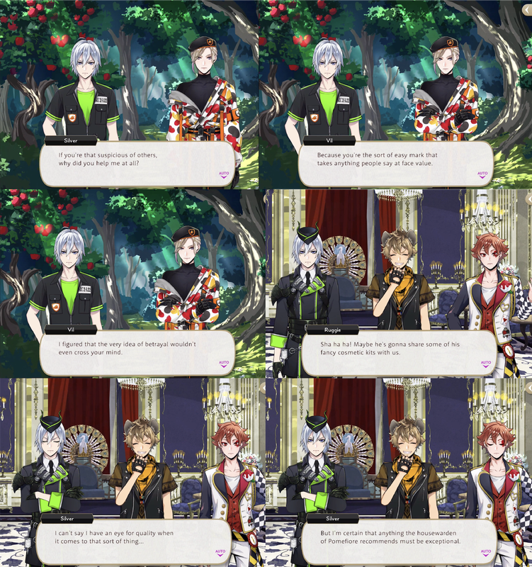 When Silver asks why Vil helped him despite being so suspicious of other students, Vil says, “Because you’re the sort of easy mark that takes anything people say at face value. I figured the very idea of betrayal wouldn’t even cross your mind.”