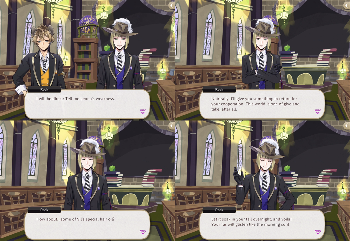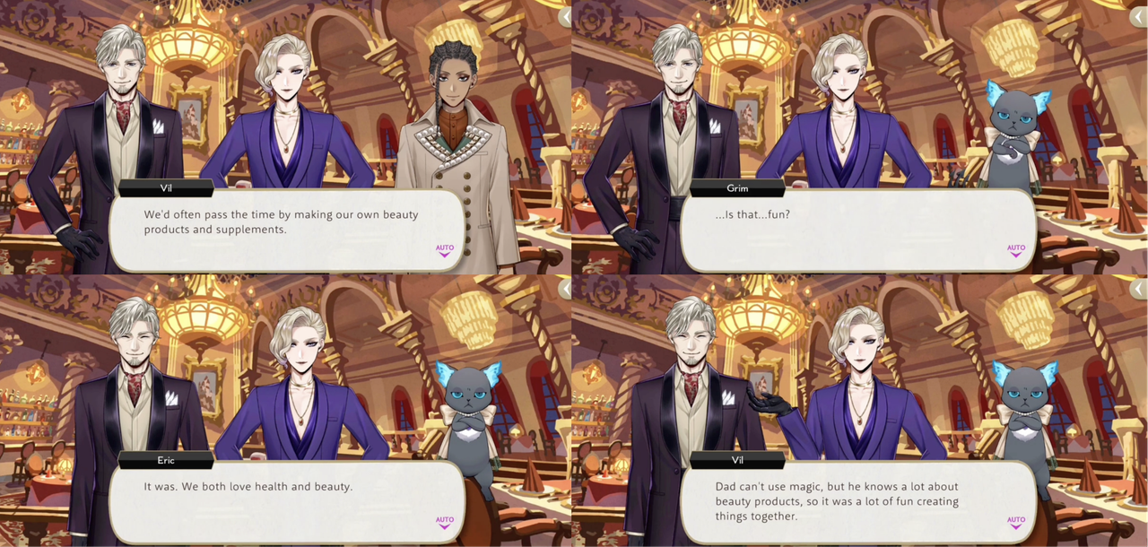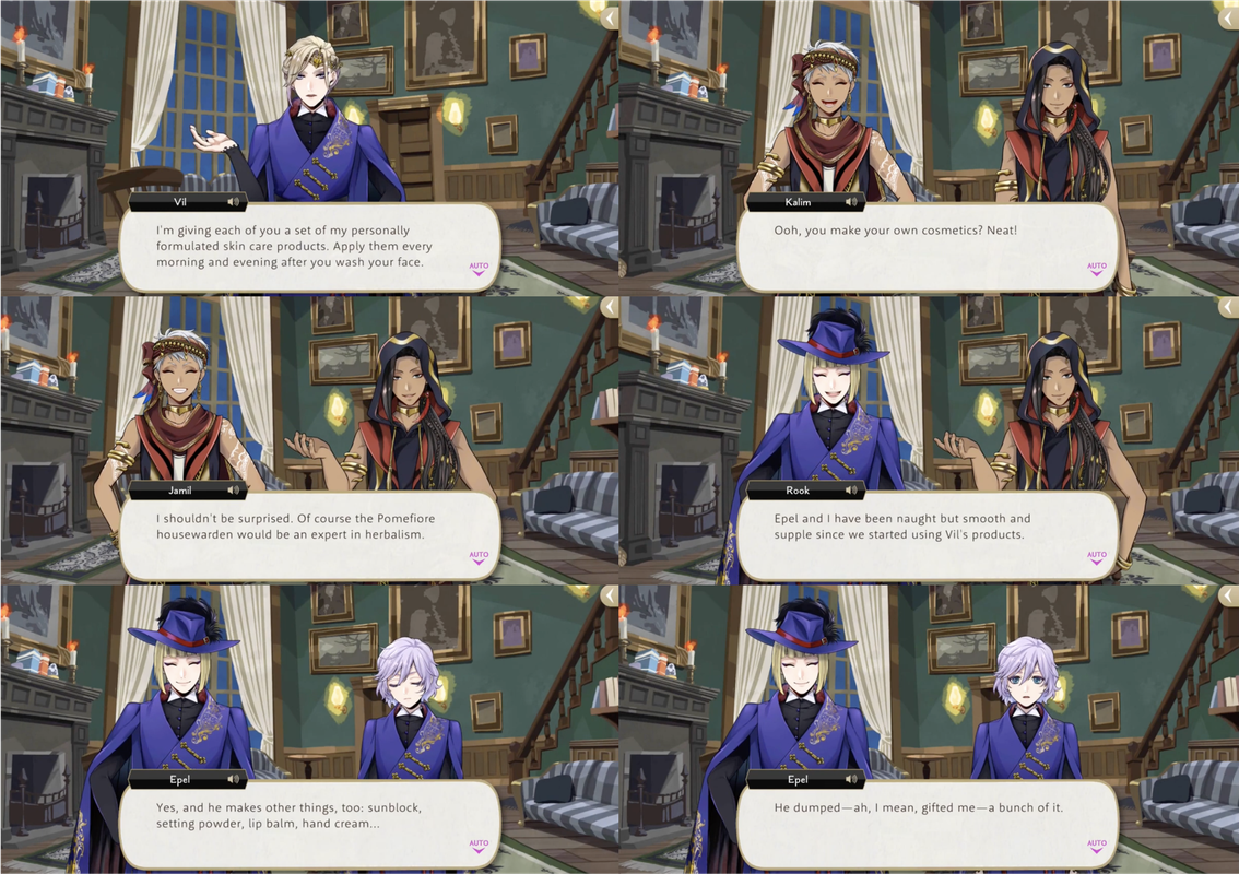 Rook has also received special hair oil of Vil’s creation, and while Leona mentions receiving all-in-one face gel from Vil, he does not specify if it was something that Vil made himself.