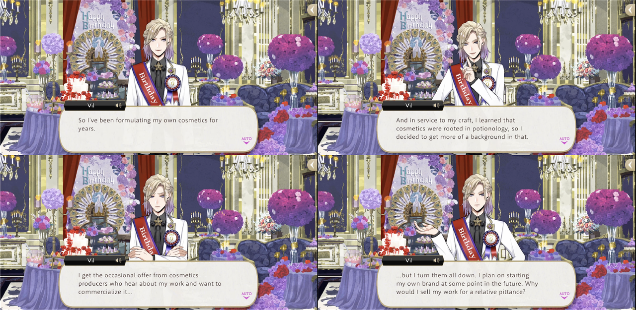 Vil says that he has been formulating his own cosmetics for years, deciding to get more of a background in potionology as a result. Vil says that he received offers from cosmetics producers who hear about his work and want to commercialize it, but he turns them all down as he plans on starting his own brand in the future.