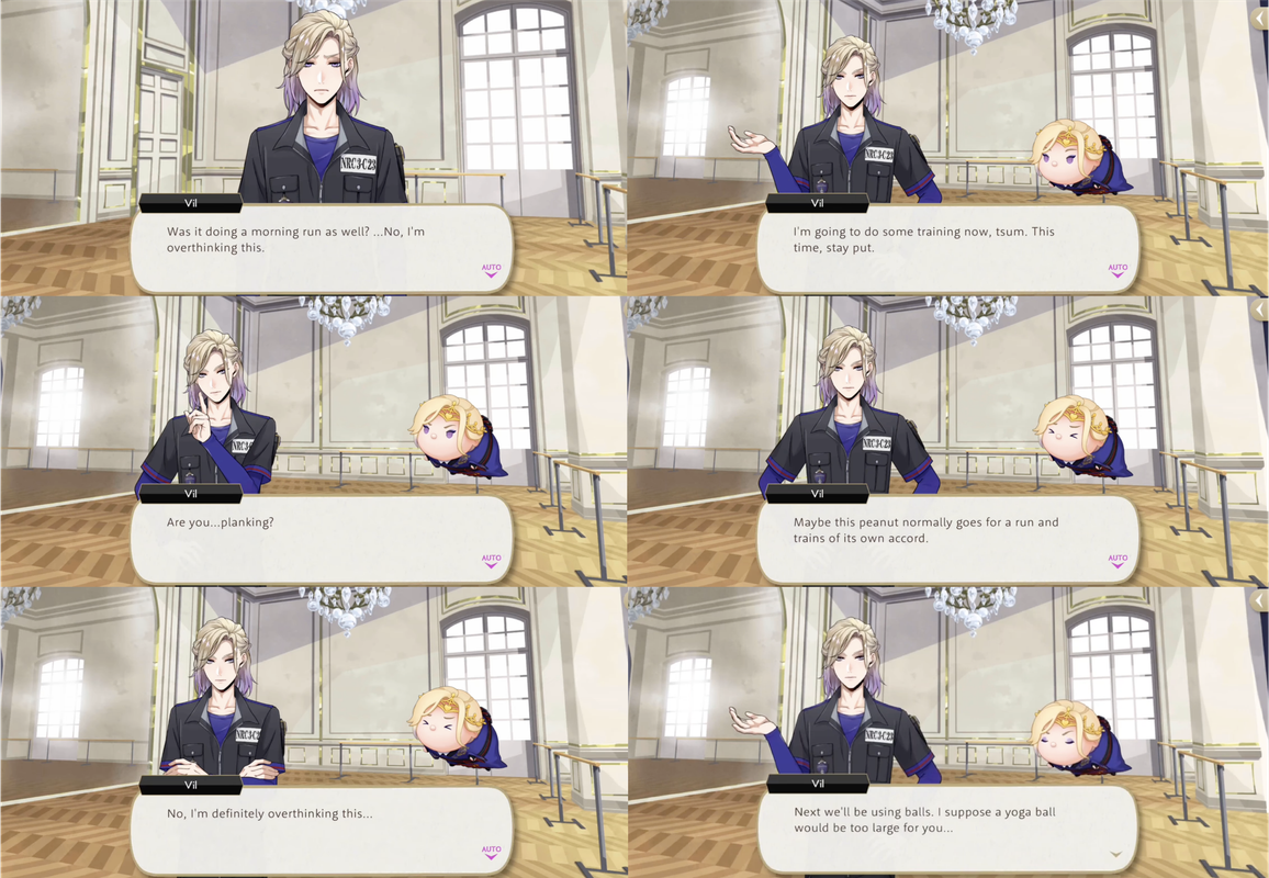 Vil seems to do yoga as a part of his morning warm-up exercises in addition to going on morning runs, joined by his tsum during Tsumsted. The tsum also joins him for additional training at Pomefiore afterwards.