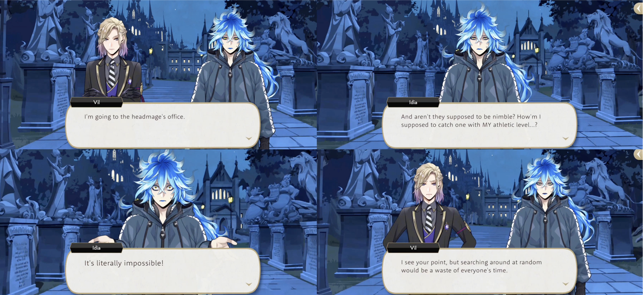 Vil reluctantly agrees to help Idia capture his tsum after Idia asks how he is supposed to do so with his athletic level.