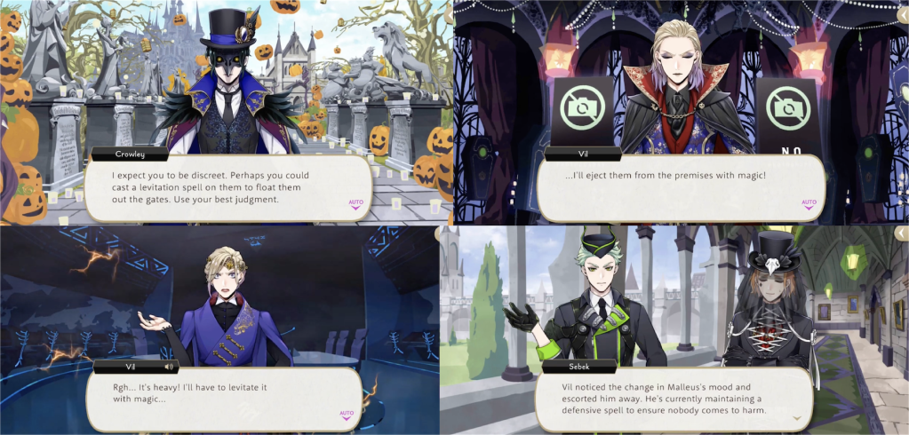 Vil also uses magic to levitate the thunder spear and to eject Magicam Monsters from campus during Halloween, possibly with levitation, and also creates a defensive barrier to keep visitors safe from Malleus’ magic.