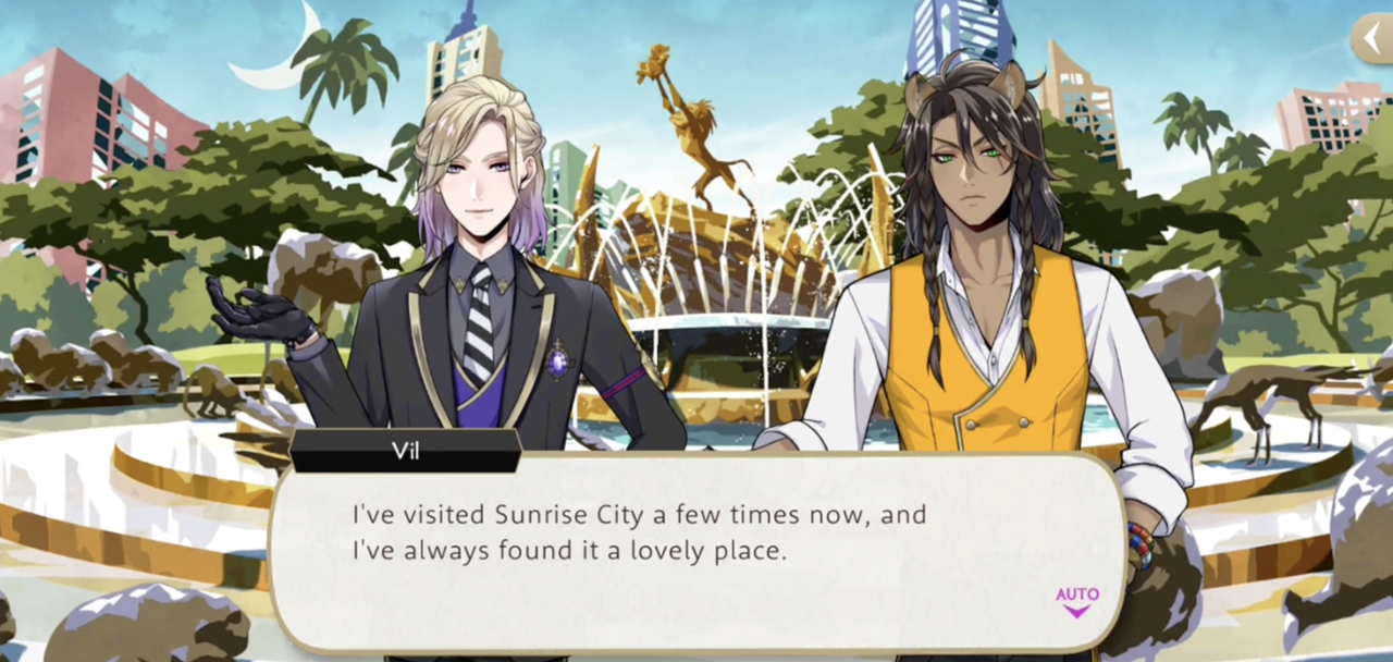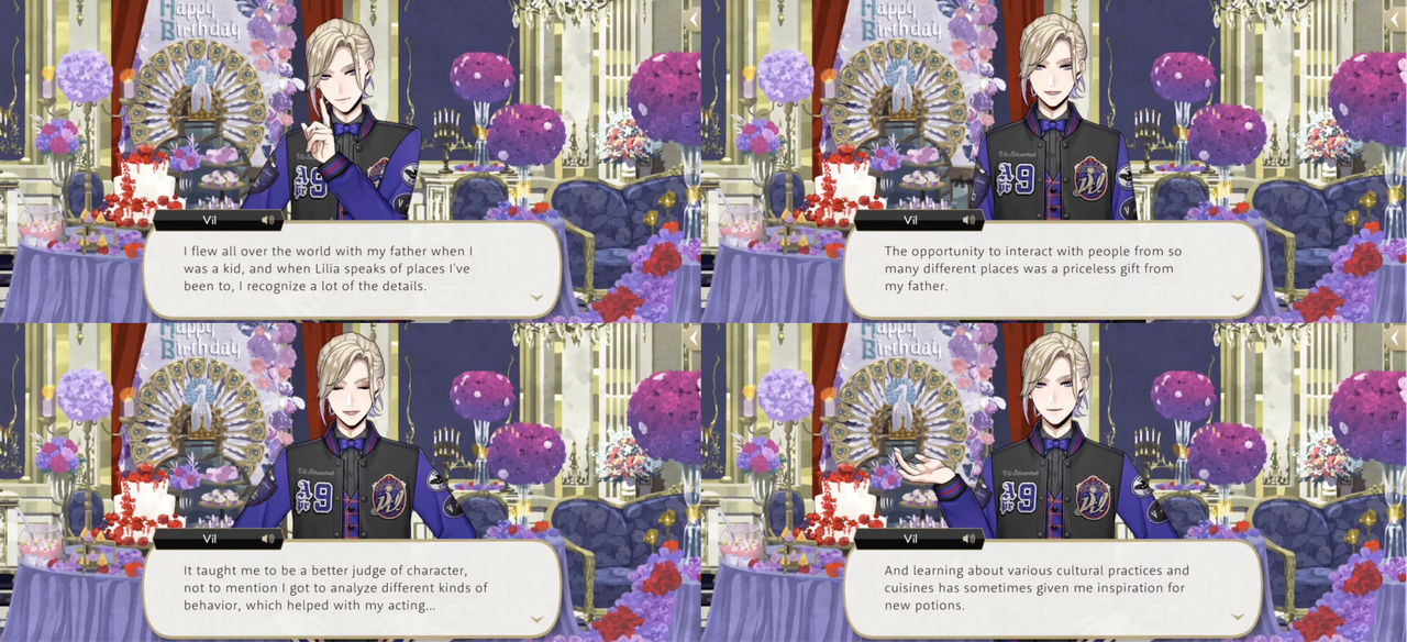 When asked to describe a time that he was grateful that he is able to use magic, Vil tells a story from his first year when both he and Eric had days off at the same time, so they decided to go into town but were spotted by paparazzi.