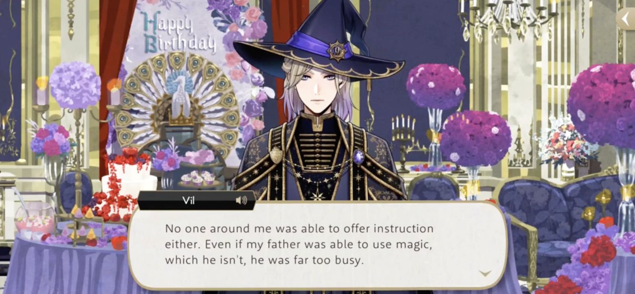 Vil says that he was too busy as a child between traveling the world and growing his acting career to focus on his magic after it manifested. As Eric is magicless Jade asks if that means Vil’s magical abilities came from his mother and Vil responds, ”Who can say? I have no idea who she was, let alone whether she was a mage. Nor have I ever cared to find out.”