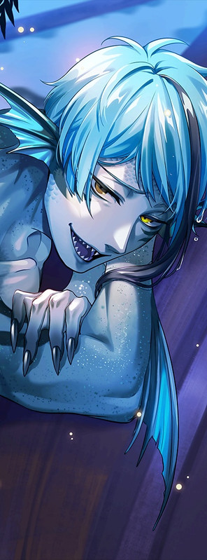 I thought that the merfolk Azul and others from Twisted Wonderland might have glowing elements due to their ecological background in dark seas, and it seems the creators in the original country thought the same thing. (source)